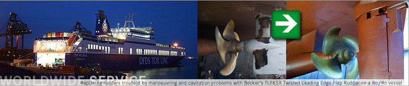 More and more owners and yards contact our sales team for the conversion of the originally installed rudder to a Becker Rudder®. Often the manoeuvring performance of the installed rudder falls below expectations or fails to meet manufacturer’s promises. Or the installed rudder suffers from cavitation damage due to faulty design with respect to the vessel’s speed and manoeuvring needs.