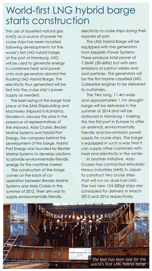 Passenger Ship Technology, no.1, 2014, "World-first LNG Hybrid Barge starts construction"