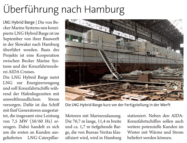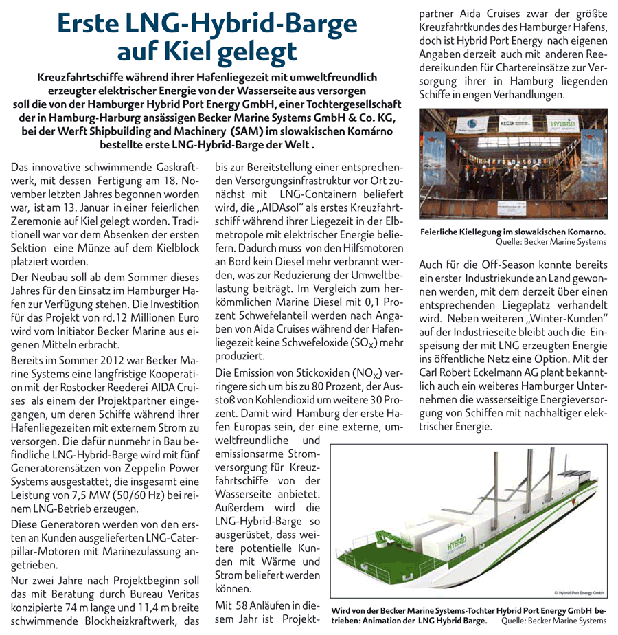Schiff&Hafen, January 2014, "LNG Hybrid Barge für Hamburg"