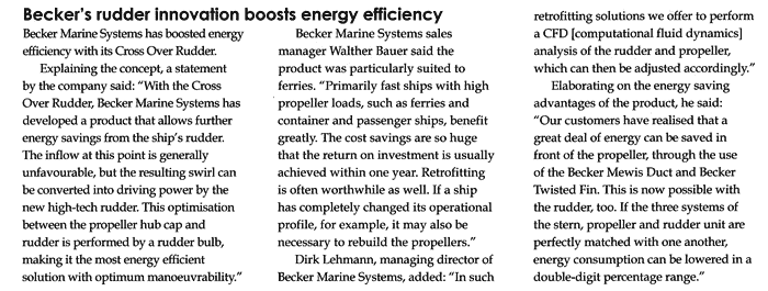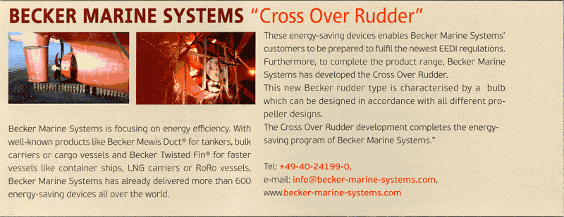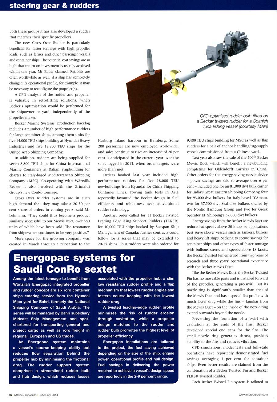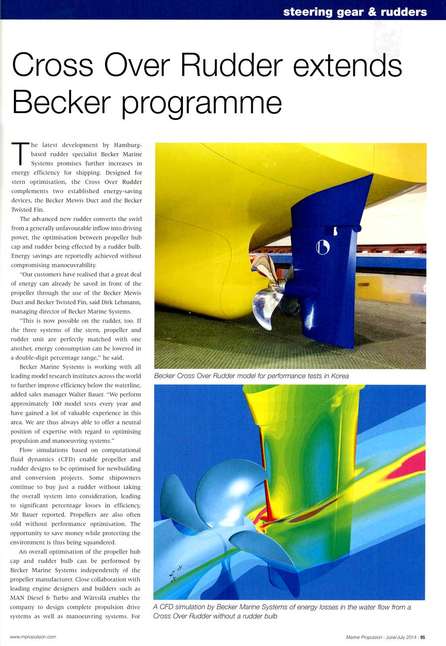 Marine Propulsion, June/July 2014, "Cross Over Rudder extends Becker programme"