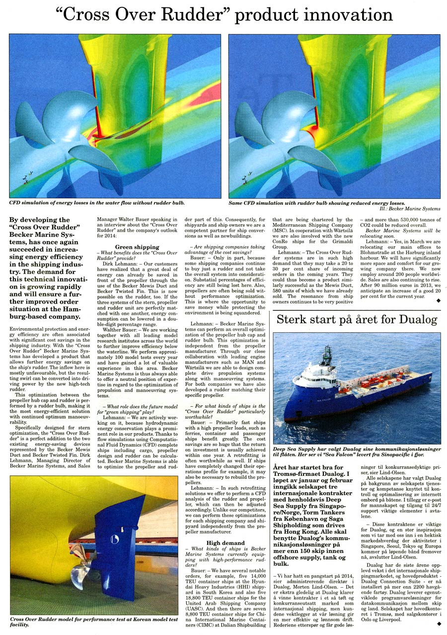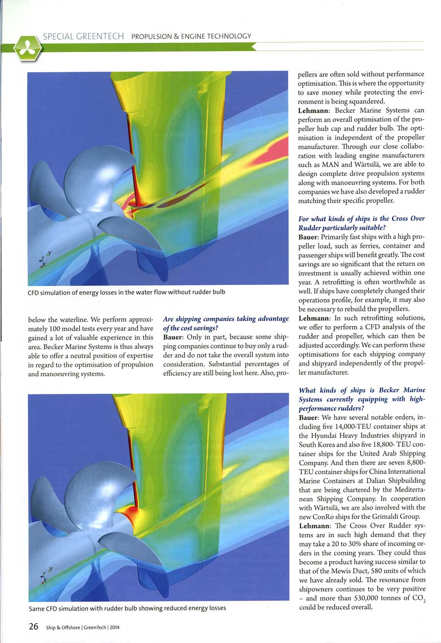 Ship&Offshore, special Green Tec, 2014, "Cross Over Rudder enables further increase in energy efficiency"