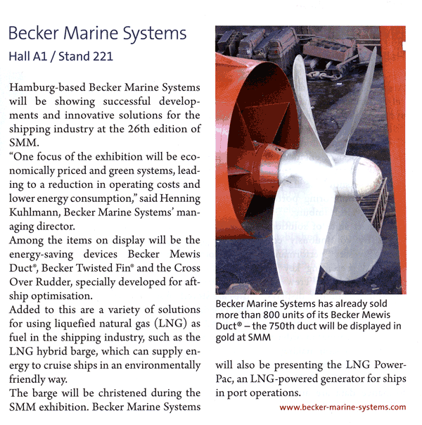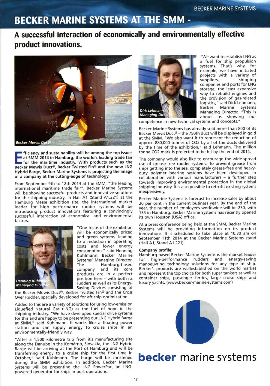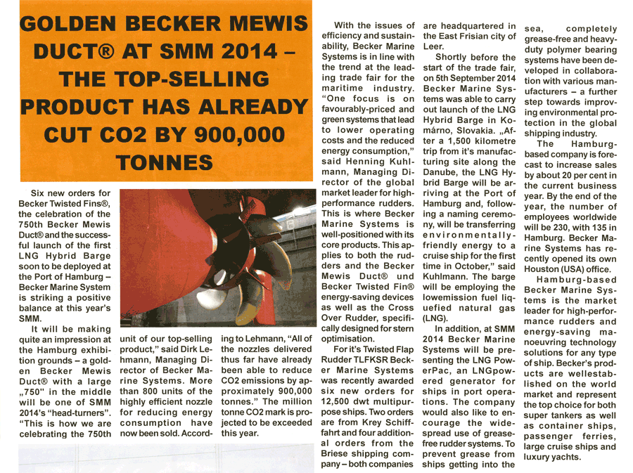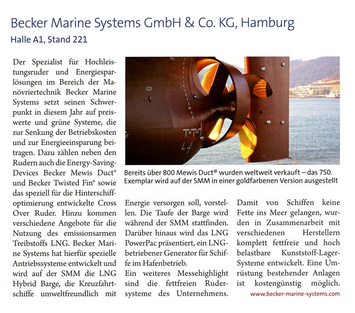Skipsrevyen, August 2014, "Becker Marine Systems at SMM"