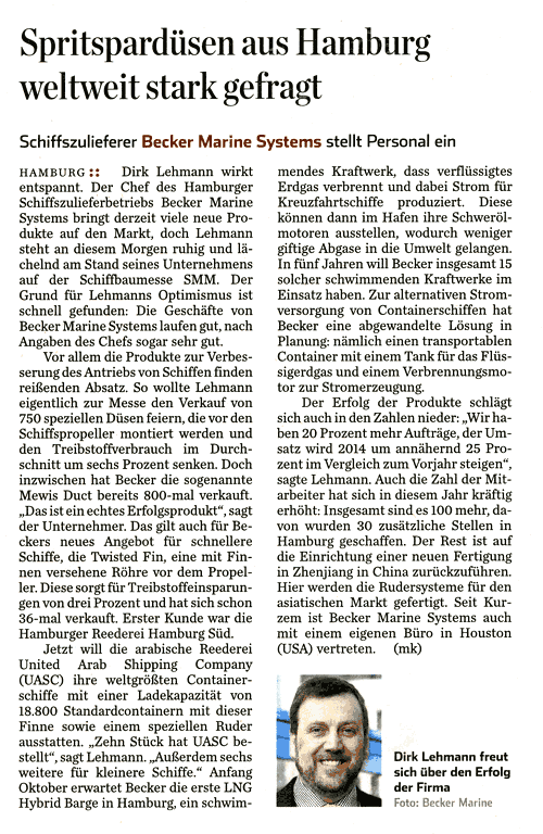 Täglicher Hafenbericht, 12th November 2014, "Becker Marine Systems: Neues Büro in den USA"