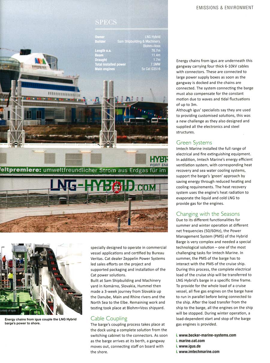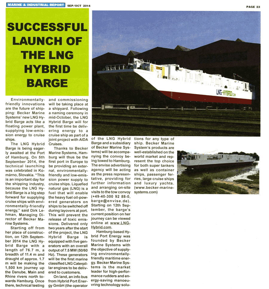 Marine & industrial Report, September/October 2014, "Successful launch of the LNG Hybrid Barge"