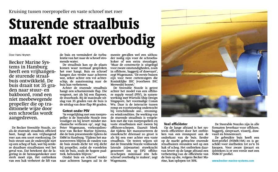 Weekblad Schuttevaer, 15th October 2014, "Sturende straalbuis maakt roer overbodig"