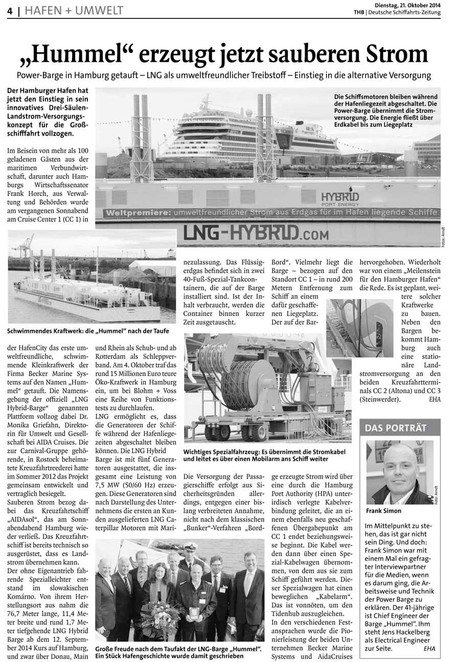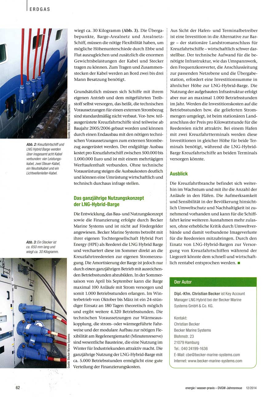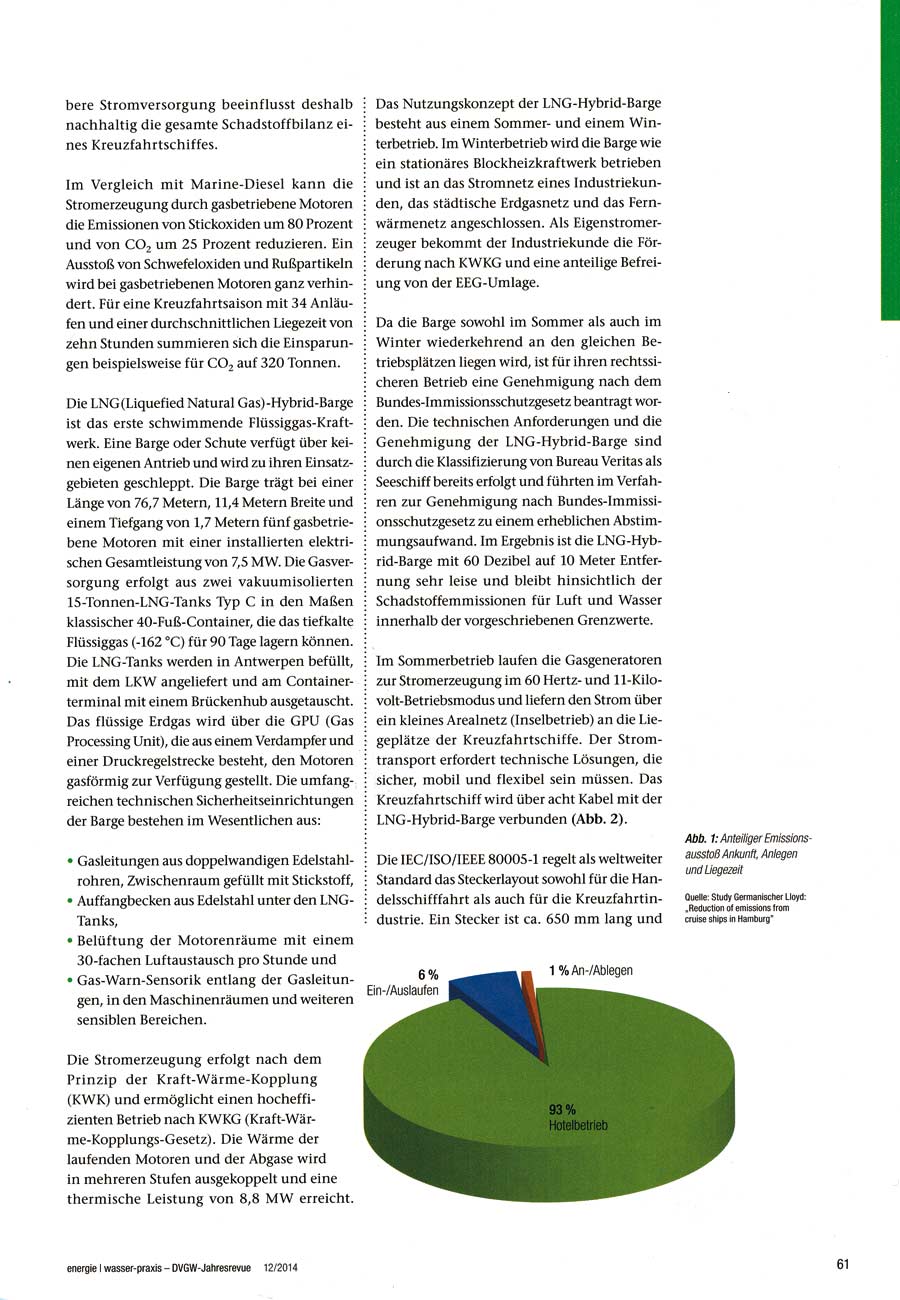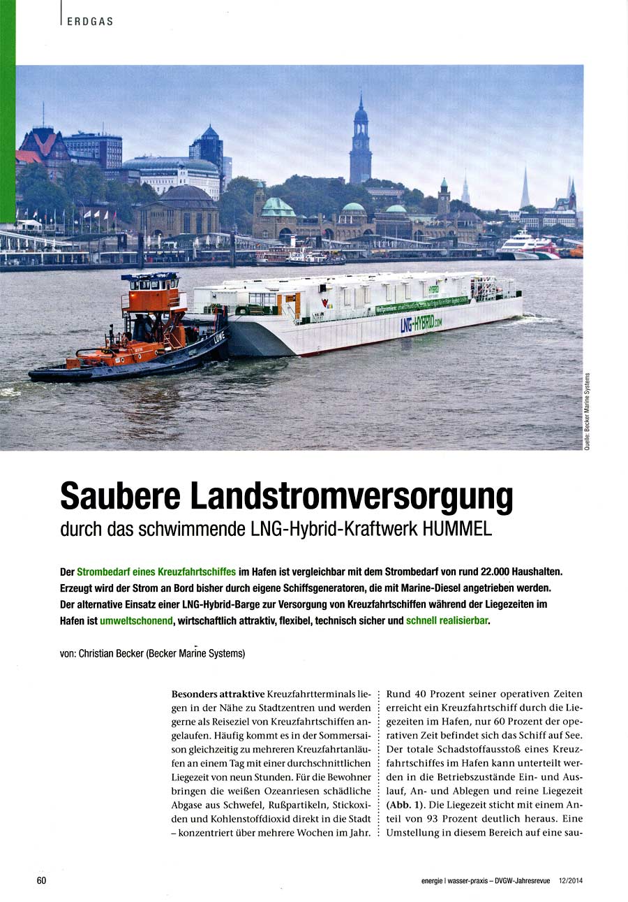 DVGW Jahresrevue 2014, "Saubere Landstromversorgung durch das schwimmende LNG-Hybrid-Kraftwerk Hummel"