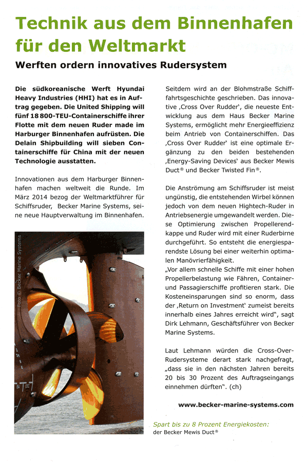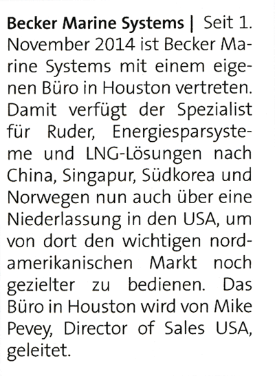 Schiff & Hafen, December 2014, "Becker Marine Systems" (New office in Houston, USA)