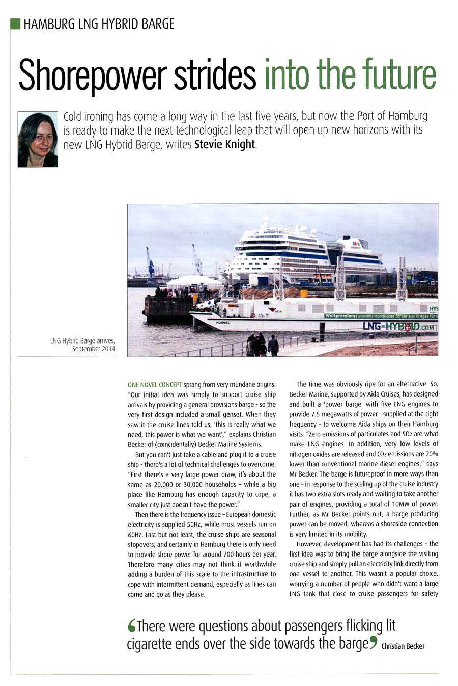 Ship&Offshore, special Green Tec, 2014, "Gas-fuelled cold ironing in Hamburg"