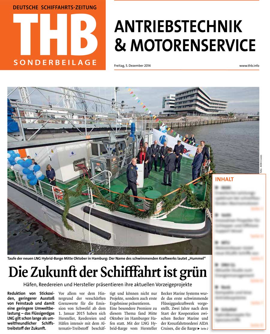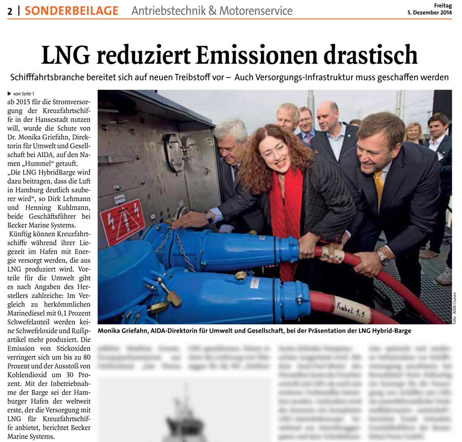 Täglicher Hafenbericht, 5th December 2014, "Die Zukunft der Schifffahrt ist grün" (LNG Hybrid Barge)