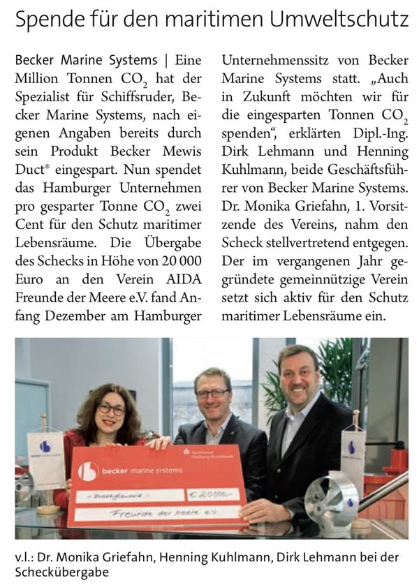Schiff & Hafen, January 2015, "Spende für den maritimen Umweltschutz"