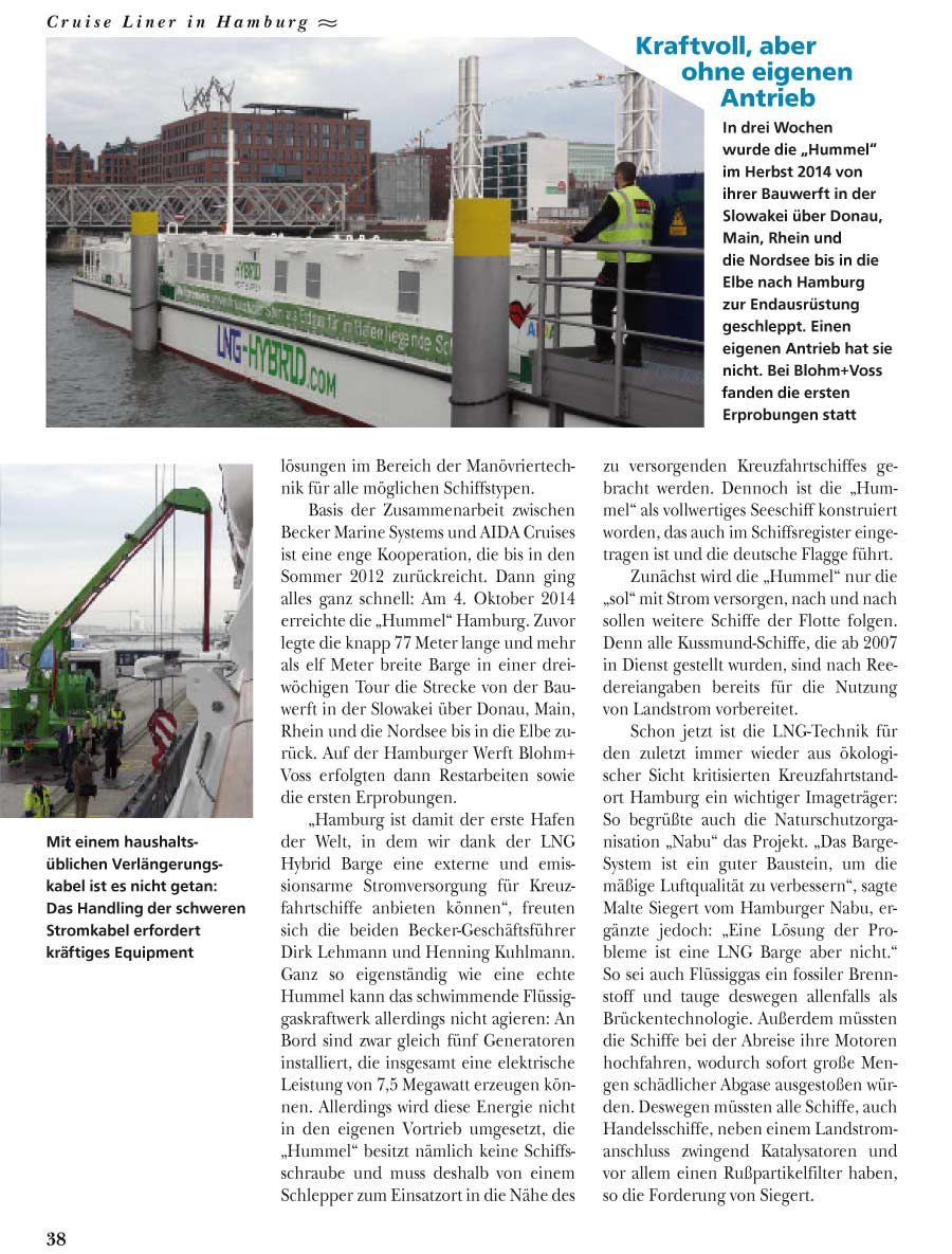 Hamburg Cruise Mag, September 2015, "Umweltfreundlicher Strom"