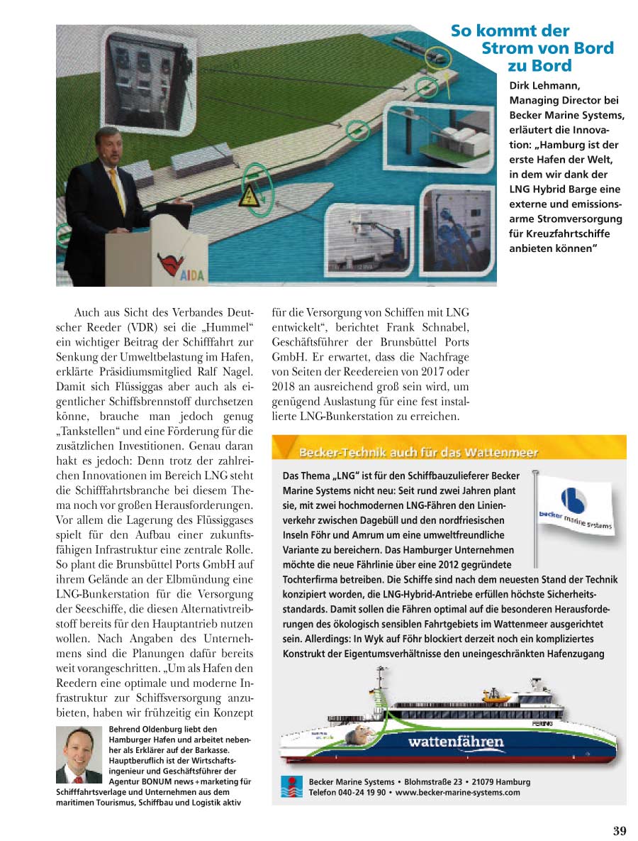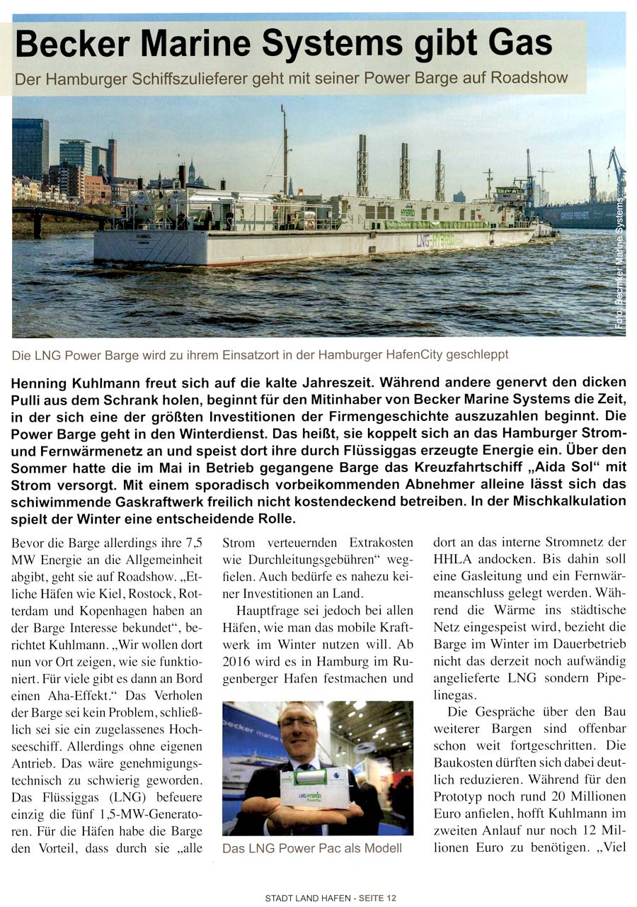 Stadt Land Hafen, September 2015, "Becker gibt Gas" (LNG Hybrid Barge Roadshow)