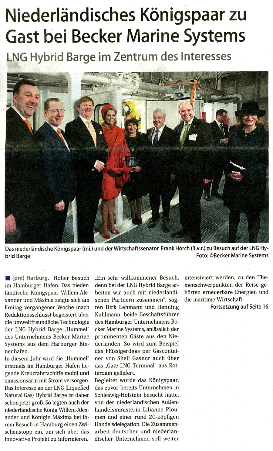 Der neue Ruf, 28th March 2015, "Niederländisches Königspaar zu Gast bei Becker Marine Systems"