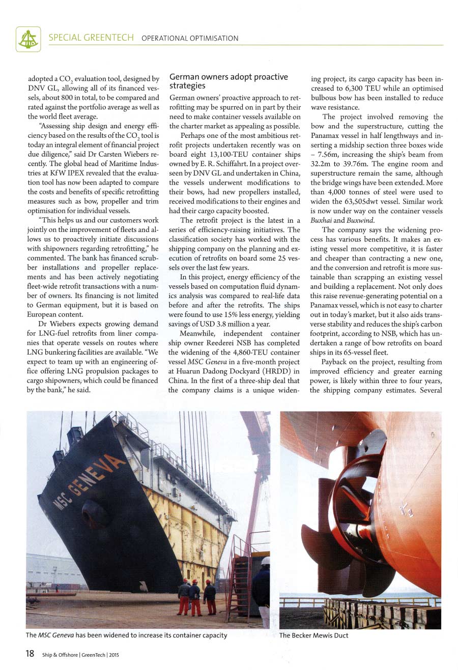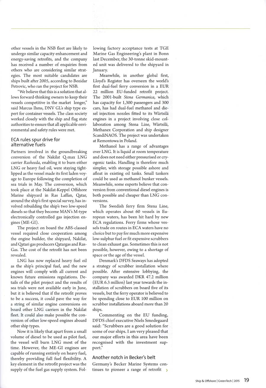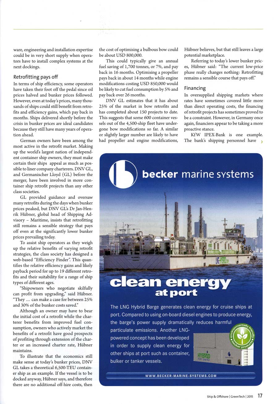 Seatrade, Green Shipping Guide 2015, "Becker confident on retrofit market"