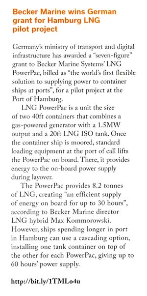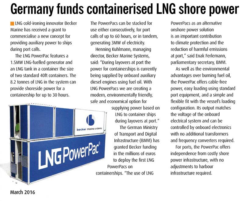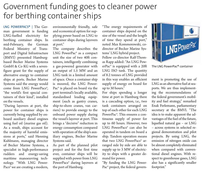 The MotorShip, March 2016, "Germany funds containerised LNG shore power"