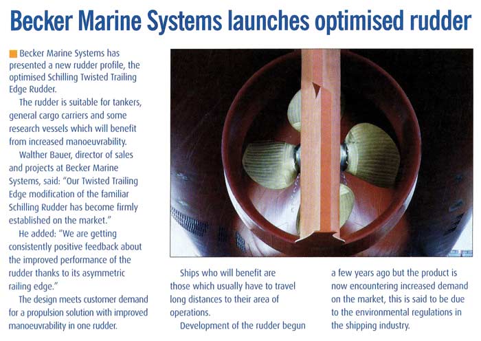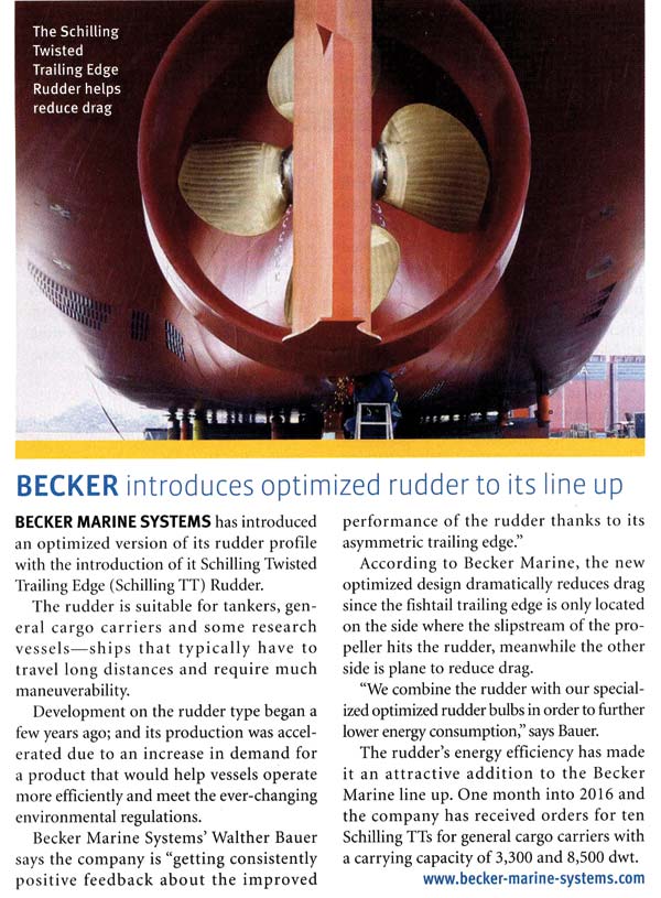 The MotorShip, March 2016, "Becker Marine Systems launches optimised rudder"