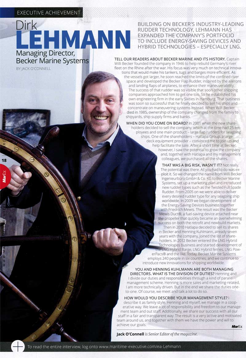 The Maritime Executive, April 2016, "Executive Achievement: Dirk Lehmann, Managing Director BMS"