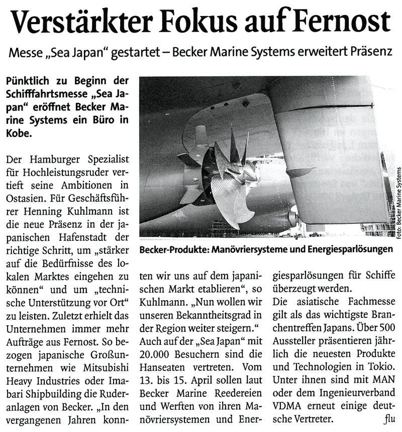 Der Neue Ruf, 16th April 2016, "Becker Marine Systems auf der Sea Japan"