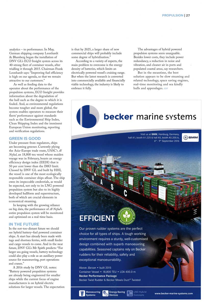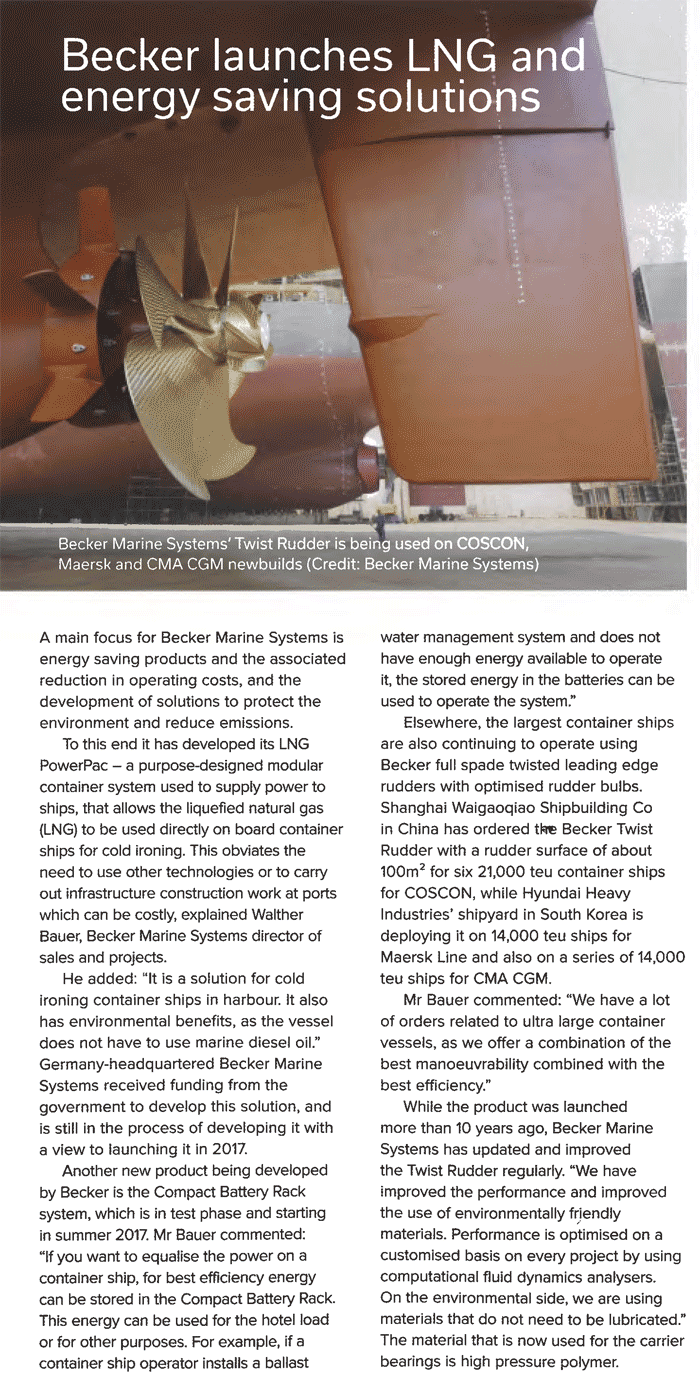 Container Shipping & Trade, 4th quarter 2016, "Becker launches LNG and energy saving solutions"