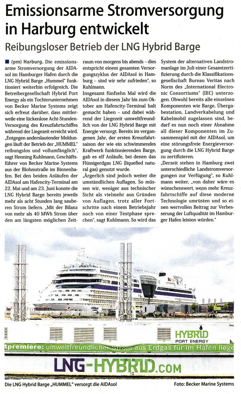 Tourismus Report Hamburg, Nr. 4, 2016, "Nachahmer willkommen" (LNG Hybrid Barge)