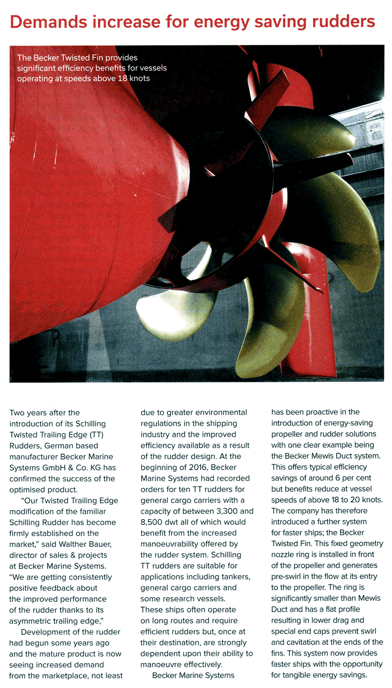Marine Propulsion, August/September 2016, "Becker Marine Systems to present product innovation"