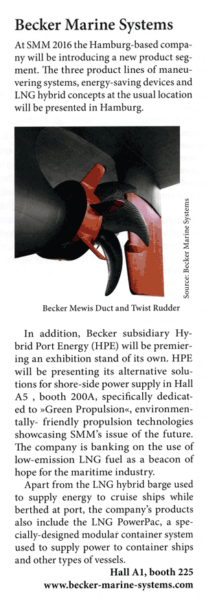 Schiff & Hafen, September 2016, "Becker Marine Systems" (SMM preview)